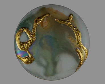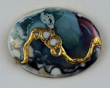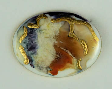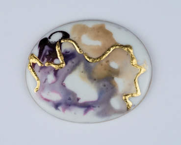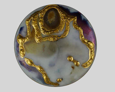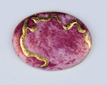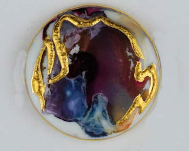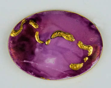 Large round brooch with Gold on plum and blue lustre €60